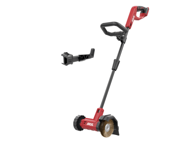 The Powerful ‘20V Max’ (18V) SKIL 0660 is a cordless weed brush for effortless environment-friendly weed removal. The 0660 quickly and efficiently removes stubborn weeds, moss and small plants from in between the tiles on your pathway, patio or driveway. You no longer need to manually remove weeds risking sore knees and an aching back or use toxic pesticides that are harmful to the environment. The weed brush has an 125mm maximum brush diameter and the brushes can be easily changed by the spindle-lock system. The telescopic height adjustment allows you to find a comfortable working position every time. You get a clear guidance thanks to the built-in brush indicator that you can easily keep in line with the gap to be weeded. In addition, the guide wheel provides optimal stability. Thanks to SKIL’s exclusive ‘Easy Storage’ design, this tool takes up minimal storage space and can be orderly stored after use. The SKIL 0660 CA is supplied with a metal brush and an ‘Easy Storage’ hook.