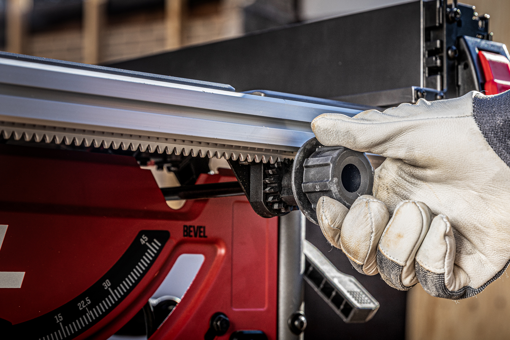 Crooked saw cuts are history, thanks to our smart rack and pinion rail, as featured on our table saws. The dual-pinion design works together to ensure easy fence adjustment and the most accurate cuts.