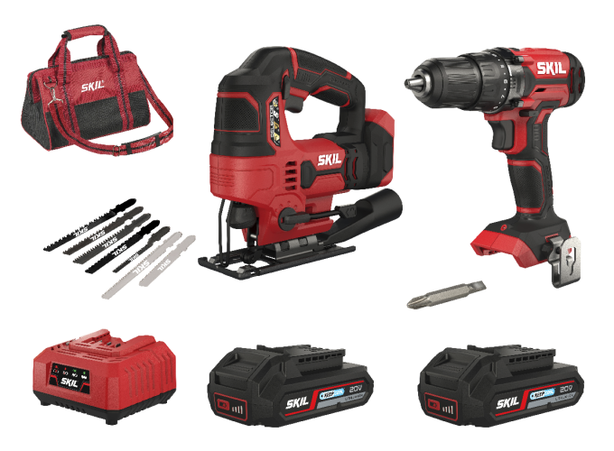 „20V Max“ (18 V) акумулаторен винтоверт SKIL 3008 удовлетворява всички Ваши потребности за най-трудни задачи „Направи си сам“ със завинтване и за пробиване в дърво и метал. Акумулаторният прободен трион SKIL 3420, „20V Max“ (18 V) е изключително подходящ за точно рязане на криви и прави срезове. Комбинираният комплект SKIL 3305 EA се състои от 2 инструмента, чанта за носене и консумативи, 2 бр. акумулаторни батерии „20V Max“ (18 V) 2,0 Ah „Keep Cool™“ и 1-часово зарядно устройство.