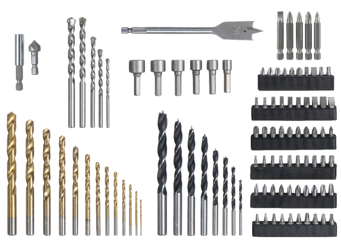 - Комплект от 5 свредла за зидария (Ø 4, 5, 6, 8, 10 мм)