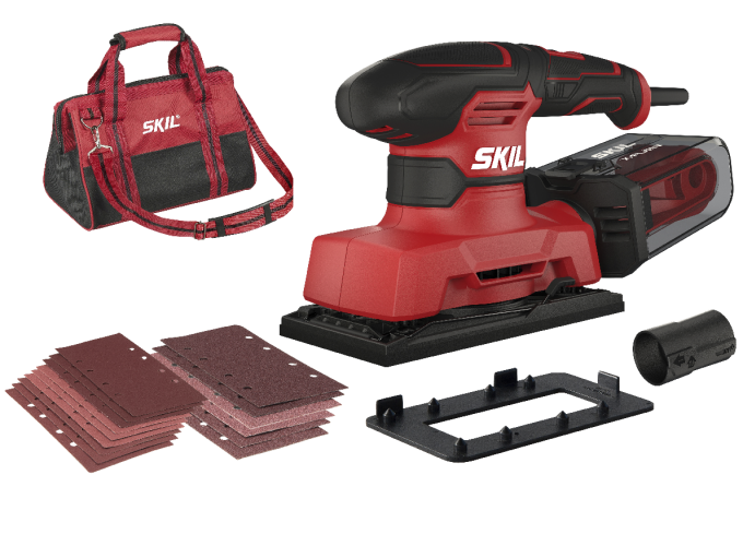 Виброшлайфът SKIL 7362 има много мощен 280 W мотор и предлага ефективни шлайфащи движения с лекота например на врати, маси, огради и бараки. С функцията регулиране на скоростта на делташлайфа скоростта може да се настрои за работата. Този инструмент има уникалната „X-Flow‟ система за събиране на прах, която отделя праха от въздуха без филтър. Основното предимство е, че няма филтър, който може да се запуши, така се гарантира постоянно мощно прахоулавяне за по-продължителна и по-чиста работа. Но ако предпочитате да използвате Вашата прахосмукачка, можете да свържете адаптера за прахосмукачка. Висококачествени уплътнени срещу прах сачмени лагери гарантират задържането на праха далече от критичните вътрешни части и увеличават експлоатационната продължителност на инструмента. За Ваше удобство този инструмент има система за балансиране с противотежест наречена „VRS‟ (система за намаляване на вибрациите). Неговите намалени нива на вибрациите водят до по-малко умора при работа. Тази шлайфмашина има двойна система за закрепване с щипки и със захващане с лепенка тип „репей‟, така можете да използвате и стандартни шкурки и шкурки със захващане с лепенка тип „репей‟. SKIL 7362 DA се доставя в чанта за носене с 15 шкурки, „X-Flow‟ кутия за прах, адаптер за прахосмукачка и шаблон за пробиване на отвори в шкурка.