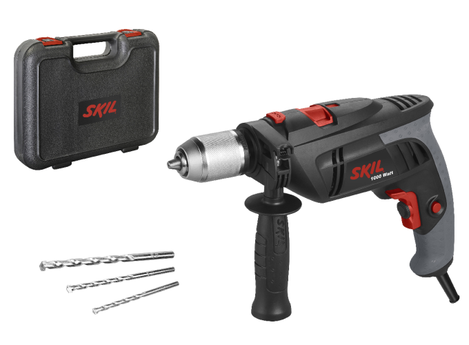 Die Schlagbohrmaschine SKIL 6398 bietet eine Leistung von 1000 Watt – ideal für schwierige Bohraufgaben. Welche schwierige Bohraufgabe Sie auch bewältigen müssen, mit dieser Schlagbohrmaschine gelingt es! Die Schlagbohrmaschine hat ein einhülsiges 13-mm-Schnellspannbohrfutter aus Metall mit Spindelarretierung für einfachen Zubehörwechsel. Das Einhülsen-Metallbohrfutter ist leicht festzuziehen, robust und langlebig. Der Gasgebeschalter mit Drehzahlvorwahl sorgt für Vielseitigkeit und sichere Werkzeugführung bei der Arbeit. Diese Schlagbohrmaschine wird in einem stabilen Koffer mit Seitengriff, Tiefenanschlag und drei Mauerwerkbohrern (5, 6 und 8 mm) geliefert.