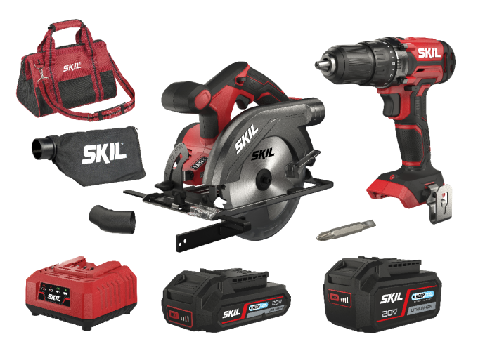 L'avvitatore a batteria SKIL 3008 «20V Max» (18 V) è la scelta giusta per far fronte a tutte le necessità di fai-da-te per la foratura nel legno, nel metallo e per operazioni di avvitatura più difficili. La sega circolare a batteria SKIL 3520 «20V Max» (18 V) è ideale per eseguire tagli precisi fino a 54 mm di profondità. Per farvi un'idea, le profondità più usate (di travi, assi ecc.) possono essere facilmente eseguite con questa capacità. Il set combinato SKIL 3307 EA è composto da due utensili, una valigetta, accessori, una batteria «20V Max» (18 V) 2,0 Ah «Keep Cool™», una batteria «20V Max» (18 V) 4,0 Ah «Keep Cool™» e un caricabatteria rapido 2,4 A.