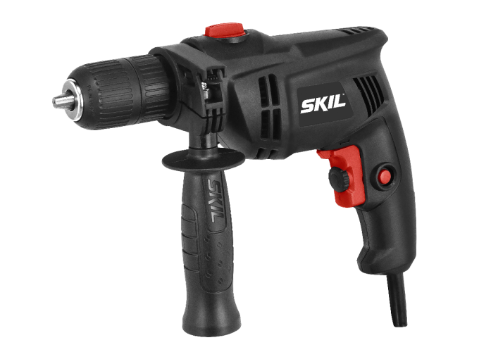 Příklepová 550 W vrtačka SKIL 1020 je ideálním nástrojem pro vrtání a další práce v domácnosti i venku. Příklepový mechanismus pro vrtání do zdiva je možné vypnout pro účely běžného vrtání a šroubování. Nastavitelná rychlost s předvolbou rychlosti zvyšuje všestrannost a stupeň kontroly. Spínač je možné zablokovat ve spuštěné poloze, aby se usnadnilo nepřerušované vrtání nebo šroubování. Tato příklepová vrtačka je opatřena zdvojeným rychloupínacím sklíčidlem 13 mm pro snadnou a rychlou výměnu příslušenství. Postranní rukojeť poslouží na pohodlné obouruční ovládání a hloubkový doraz na nastavení hloubky vrtání při vrtání naslepo.