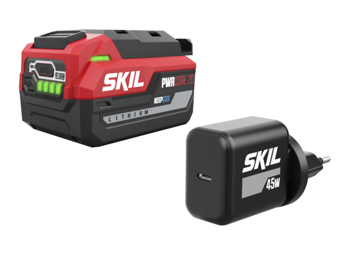 - Cargador Power Delivery de 45 W: Carga tanto baterías PWRASSIST™ USB-C compatibles con SKIL como dispositivos móviles