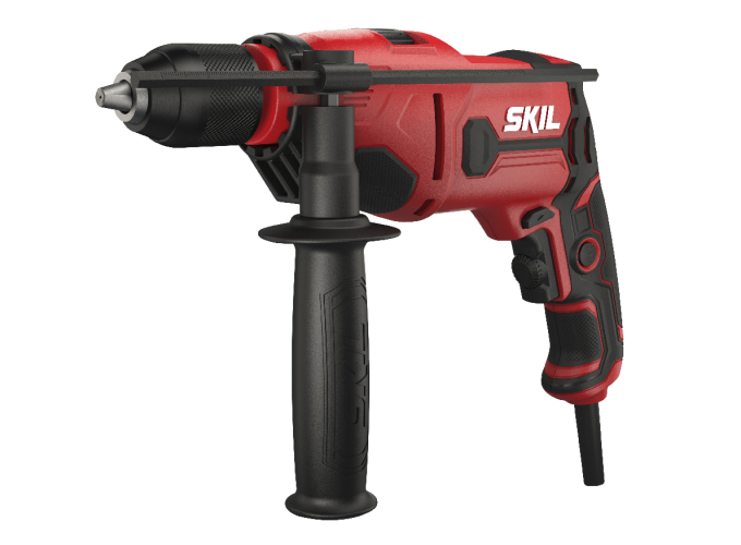 El taladro percutor SKIL 6725 con potente motor de 710 W es adecuado para taladrar ladrillo y mampostería, y también para taladrar madera, metal, cerámica y plástico. El mecanismo de martillo permite taladrar en mampostería, y el modo de martillo puede desactivarse para tareas de taladrado normal o atornillado. Esta herramienta tiene un portabrocas metálico de cierre rápido automático con bloqueo de 13 mm que impide que la broca se deslice. El bloqueo del eje permite cambiar los accesorios de forma fácil. El interruptor de velocidad variable con preselección de velocidad le proporciona versatilidad y control del trabajo para obtener los mejores resultados. Para su comodidad, puede bloquear el gatillo a fin de taladrar o atornillar de manera continua. Este taladro percutor ofrece una serie de prácticas funciones auxiliares, por ejemplo la de inversión. Esta función resulta útil, por ejemplo, a la hora de aflojar o retirar tornillos. Además, el diseño ergonómico con agarre suave garantiza un confort extra durante el trabajo. El SKIL 6725 AA se suministra con empuñadura lateral y tope de profundidad.