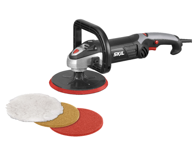 La pulidora SKIL 1144 de 1200 W puede utilizarse para eliminar arañazos en automóviles y barcos, para mejorar el aspecto de un automóvil o para eliminar restos de óxido en aluminio, acero y otros metales. Su diseño compacto y ligero reduce la fatiga al pulir grandes superficies. La función de arranque suave garantiza una puesta en marcha controlada y manejable de la pulidora para reducir salpicaduras de abrillantador cuando se conecta la herramienta. El control de velocidad variable le permite ajustar la velocidad a las características de cada tarea. Para su comodidad, puede bloquear el gatillo a fin de pulir de manera continua. Además, el sistema electrónico de velocidad constante garantiza una velocidad uniforme con independencia de la presión aplicada para que el resultado sea un pulido perfecto. La empuñadura lateral en D y la empuñadura trasera con agarre suave garantizan el máximo confort en todas las situaciones de trabajo. La SKIL 1144 está provista de un plato de apoyo de velcro para un cambio rápido y fácil de accesorios, y se suministra con una almohadilla de lana, una de espuma blanda y otra de espuma dura.