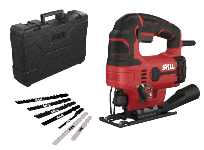 Ubodna pila 550 W SKIL 4530 iznimno je svestrana. Prikladna je za zaobljene i ravne rezove u brojnim materijalima. Birač materijala s četiri postavke omogućuje vam pronalazak uvijek prave postavke za posao. Prekidač s funkcijom promjenjive brzine omogućuje vam kontrolu brzine rezanja za postizanje optimalnih rezultata. Sustav za izmjenu pribora bez upotrebe alata „Clic“ omogućuje brzu izmjenu listova pile bez upotrebe alata. Druge praktične značajke uključuju usisavač koji omogućuje jasan pregled radnog dijela i veliki prekidač s gumbom za blokadu koji omogućuje neprekidan rad. Prilagodljiva ploča postolja omogućuje kose rezove pod kutom do 45°. Za čišće radno okruženje tu je adapter za usisavač koji odgovara većini usisavača standardnih dimenzija. Osim toga, ergonomski dizajn s mekanim rukohvatom jamči dodatnu udobnost pri radu. SKIL 4530 GA isporučuje se u čvrstom kovčegu za nošenje sa 7 listova pile i adapterom za usisavač.