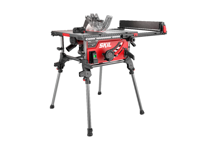 Stolna pila SKIL 1340 opremljena je čvrstim aluminijskim cjevastim okvirom i ugrađenim nožicama koje se lako preklapaju zahvaljujući sustavu za brzo zabravljivanje bez ključa. Može se namještati visina jedne od nožica čime se jamči stabilnost u svakom trenutku. A za dodatnu praktičnost, sav isporučeni pribor složen je na proizvodu. Stol se vrlo kompaktno može sklopiti za skladištenje i transport. Opremljen je čak i dodatnom ručkom za lako prenošenje.