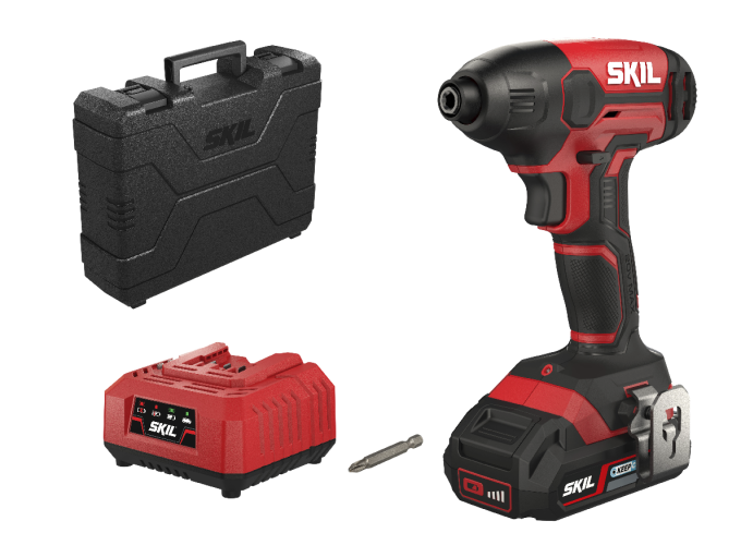 A „20V Max” (18 V-os) SKIL 3210 akkus ütvecsavarozó nagy nyomatékot biztosít a csavarok erőfeszítés nélküli behajtásához és kiszereléséhez. Az akkus ütvecsavarozó kompakt és könnyű kialakítással, valamint robusztus alumínium hajtóművel rendelkezik, amelynek köszönhetően tartósabb. A tartozékok egyszerűen tölthetők, köszönhetően a hatlapú gyorsbefogó tokmánynak. Ebben a sokoldalú szerszámban valóban mindent megtalál, amire szüksége van: megbízható lítium-ionos akkumulátortechnológia, szabályozható fordulatszám az irányításhoz, LED-lámpa a munkadarab jó láthatóságáért. Sőt, a szerszám előre/hátra irányt jelző LED-del rendelkezik, így azonnal leolvasható a hajtás iránya. A szabadalmaztatott akkumulátorszint-jelzőről könnyedén leolvasható az akkumulátor töltöttsége. Végül, de nem utolsósorban, a szerszám ergonomikus kialakítása és puha markolata kiemelkedően kényelmes munkavégzést biztosít. A SKIL 3210 GB szerszámot tartós hordtáskában, egy „20V Max” (18 V-os) 2,0 Ah „Keep Cool” akkumulátorral, gyorstöltővel, PH2 csavarozóbittel és övcsattal szállítjuk.