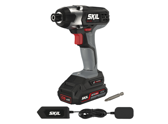 The ‘20V Max’ (18V) SKIL 2905 cordless impact driver offers high torque for effortless driving and removing of screws and bolts. This cordless impact driver has a compact and lightweight design with a robust, aluminium gearbox that increases its durability. Changing accessories is easy, thanks to the quick clamp chuck with hex connection. All in all, this versatile tool truly offers everything you need: reliable Lithium-Ion battery technology, variable speed for full control and the LED light ensures good visibility of your work. The patented battery-level indicator clearly shows the charge level of the battery, so you’ll always be in time to recharge. Last but not least, the ergonomic design and softgrip on the tool provide extra working comfort. The SKIL 2905 AA is supplied with one ‘20V Max’ (18V) 2,0Ah battery, a charger and a PH2 screwdriver bit.