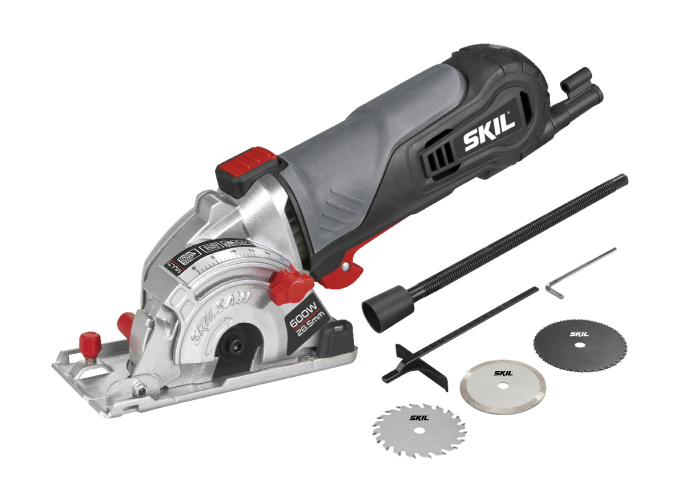 The SKIL 5330 ‘Multisaw’ comes with two 80-tooth hardened steel blades for very smooth cutting in various materials. A diamond disc is included for cutting through materials like ceramic tiles. Also included are a parallel guide for straight sawing assistance and a vacuum cleaner connection hose so you can work in a low-dust environment.