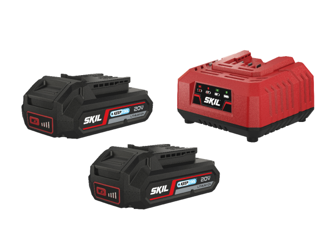Queste batterie «20V Max» (18 V) 2,0 Ah, di grande potenza e con indicatore a LED del livello di carica, grazie alla superiore tecnologia al litio non presentano effetto memoria, né autoscarica e sono sempre pronte all'uso. La tecnologia «Keep Cool™» della batteria incrementa l'autonomia del 25% e raddoppia la durata. La tecnologia «ActivCell™» ottimizza lo sfruttamento della potenza, previene il surriscaldamento e massimizza le prestazioni della batteria. Il caricabatteria «20V Max» (18 V) ricarica completamente una batteria entro un'ora.