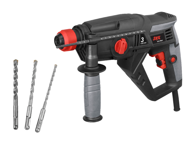 Šiame „SKIL 1743“ perforatoriuje įrengtas galingas 600 W variklis, o trys skirtingos funkcijos užtikrina universalumą. Jo galingas pneumatinis mechanizmas yra skirtas gręžti betone, sustabdžius perforatorių atliekami įprasti gręžimo darbai, o sustabdžius sukimą galima atlikti lengvus kapojimo darbus. „SDS+“ sistema užtikrina greitą ir lengvą priedų keitimą. Greičio reguliavimo funkcija su išankstiniu greičio pasirinkimu suteikia universalumo ir palengvina valdymą dirbant. Šis perforatorius idealiai tinka darbams, kai reikia gręžti betoną iki 20 mm ir kapoti. Šio gręžtuvo komplekte yra šoninė rankena, gylio matuoklis ir trys 6, 8, 10 mm „SDS+“ grąžtai.
