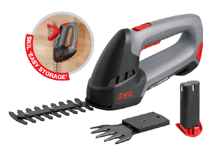 Pateicoties SKIL 4,8 V zāles šķēru 0750 jaudīgajam triju pakāpju pārnesumam, šis instruments ir ideāli piemērots visiem zāliena malu apstrādes un krūmu trimēšanas darbiem pilsētas dārzos. Šīs zāles šķēres tiek piegādātas kopā ar krūmu asmeni, zāles asmeni un rezerves akumulatoru. Sistēma stiprināšanai bez palīgrīkiem “Clic” ļauj viegli nomainīt apgriešanas asmeni, nelietojot nekādus palīgrīkus. Pateicoties SKIL ekskluzīvajai vieglās uzglabāšanas koncepcijai “Easy Storage”, šīs zāles šķēres un rezerves asmens uzglabāšanas laikā aizņem ļoti maz vietas.