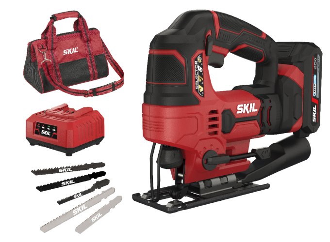 SKIL instruments 3420 ir “20V Max” (18 V) akumulatora figūrzāģis, kas ir lieliski piemērots precīzu taisnu un liektu zāģējumu veidošanai. LED gaismas avots nodrošina labu redzamību apstrādes vietā. Materiāla izvēles pārslēdzējam ir četri stāvokļi, kas ļauj izvēlēties veicamajam darbam atbilstošu iestatījumu. Darbības ātruma regulators ļauj izmantot figūrzāģi visdažādāko materiālu zāģēšanai, gūstot izcilus rezultātus. Stiprināšanas sistēma ar fiksatoru “Clic” ļauj viegli nomainīt zāģa asmeņus, nelietojot palīgrīkus. Starp citām parocīgām īpašībām jāmin tutekļu aizpūšanas funkcija, kas nodrošina labu redzamību apstrādes vietā, kā arī balstplāksni ar bez palīgrīkiem regulējamu nolieces leņķi, kas ļauj veidot slīpos zāģējumus 45° leņķī. Lai uzturētu tīrību darba vietā, iebūvēts savienotājs vakuumsūcēja pievienošanai ļauj pievienot instrumentam vairumu standarta izmēra vakuumsūcēju. Bet ergonomiskā uzbūve un rokturis ar mīkstu pārklājumu nodrošina papildu darba komfortu. SKIL instruments 3420 DC tiek piegādāts pārnešanas somā kopā ar “20V Max” (18 V) 2,0 Ah “Keep Cool” akumulatoru, ātrās uzlādes ierīci, trim zāģa asmeņiem kokam, diviem zāģa asmeņiem metālam un adapteri vakuumsūcēja pievienošanai.