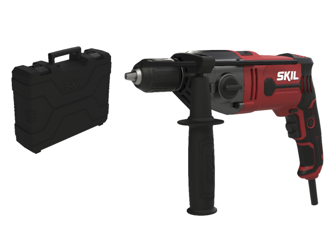 De SKIL 6710 klopboormachine met 900W motor is niet alleen ideaal voor het boren in bakstenen en metselwerk, maar ook voor het boren in hout, metaal, keramiek en kunststof. Hij heeft twee snelheden, één voor snel boren en één voor zware boor- en schroefklussen. Het hamermechanisme is voor het boren in metselwerk en de hamermodus kan worden uitgeschakeld voor gewoon boren en schroeven. Dit gereedschap is voorzien van een 13 mm-snelspanboorkop met enkele bus en vergrendeling die voorkomt dat de bits kunnen slippen. Dankzij de automatische asvergrendeling kunnen accessoires gemakkelijk worden gewisseld. De variabele snelheid met vooraf instelbare snelheid biedt veelzijdigheid en controle voor uw klus voor de beste resultaten. Voor uw gemak kunt u de schakelaar vergrendelen voor continu boren en schroeven. Deze klopboormachine heeft een groot aantal praktische functies, bijvoorbeeld de functie voor links-/rechtsdraaien. Deze is bijvoorbeeld handig bij het losdraaien of verwijderen van schroeven. Bovendien zorgt het ergonomische ontwerp met softgrip voor extra gebruikscomfort. De SKIL 6710 GA wordt geleverd in een compacte draagkoffer, inclusief zijhandgreep en diepteaanslag.