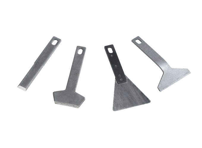 Deze set met elektrische schraperbladen bestaat uit een universeel blad, een snijder voor harde oppervlakken, een spatel voor zachte en gevoelige oppervlakken en een beitel voor kortvezelig zacht hout.