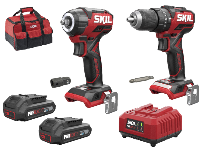 De „20V Max” 3075 accu-klopboormachine en 3265 accudraaislagmoeraanzetter zijn onderdeel van het compacte borstelloze assortiment van SKIL. Deze gereedschappen zijn extreem compact en bieden een combinatie van hoge prestaties, duurzaamheid en een ongeëvenaard niveau van gemak. Net als alle andere SKIL „20V Max” accugereedschappen worden deze modellen aangedreven door de toonaangevende geavanceerde „PWRCORE 20™” accu- en opladertechnologie. Onze SKIL 3075 is een borstelloze accu-klopboormachine met klopboorfunctie. Dit gereedschap is ideaal voor het boren in hout, metaal en zelfs metselwerk, en voor de zwaarste schroefklussen. Onze SKIL 3265 borstelloze accu-draaislagmoeraanzetter heeft een hoog koppel voor het moeiteloos vastdraaien en losdraaien van bouten en moeren. Dankzij de compacte en lichte ontwerpen is boven het hoofd werken of op lastig bereikbare krappe plekken een makkie. De digitale borstelloze motoren leveren meer vermogen, meer efficiëntie en een 10x langere levensduur dan vergelijkbare motoren met koolborstels. De SKIL 3358 EA comboset met twee gereedschappen wordt geleverd in een draagtas, inclusief twee 2,0 Ah „KEEPCOOL™”-accu's, een snellader, een dubbelzijdig schroefbit, een 3/8” naar 1/2” zeskantadapter en twee riemclips.