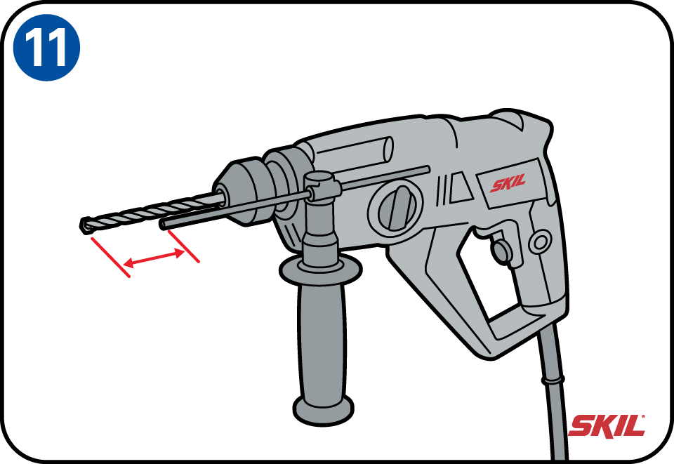 Met een afstandshouder, die vaak standaard op de boormachine zit, kun je de boordiepte vooraf afstellen. Zo voorkom je dat je een muur of werkstuk per ongeluk geheel doorboort. Je kunt ook een afstandsringetje om de boor schuiven en deze vastzetten op de gewenste diepte. Een gekleurd stukje tape op de boor plakken werkt ook.