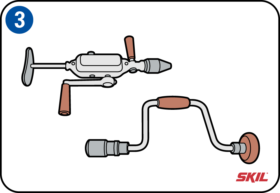 De meest eenvoudige boor is de fretboor. Deze is handig bij het voorboren van gaatjes voor de schroeven. Draai de fretboor eerst linksom en rechtsom, tot de boorpunt in het hout grijpt. Draai de boor vervolgens rechtsom tot de gewenste diepte bereikt is.