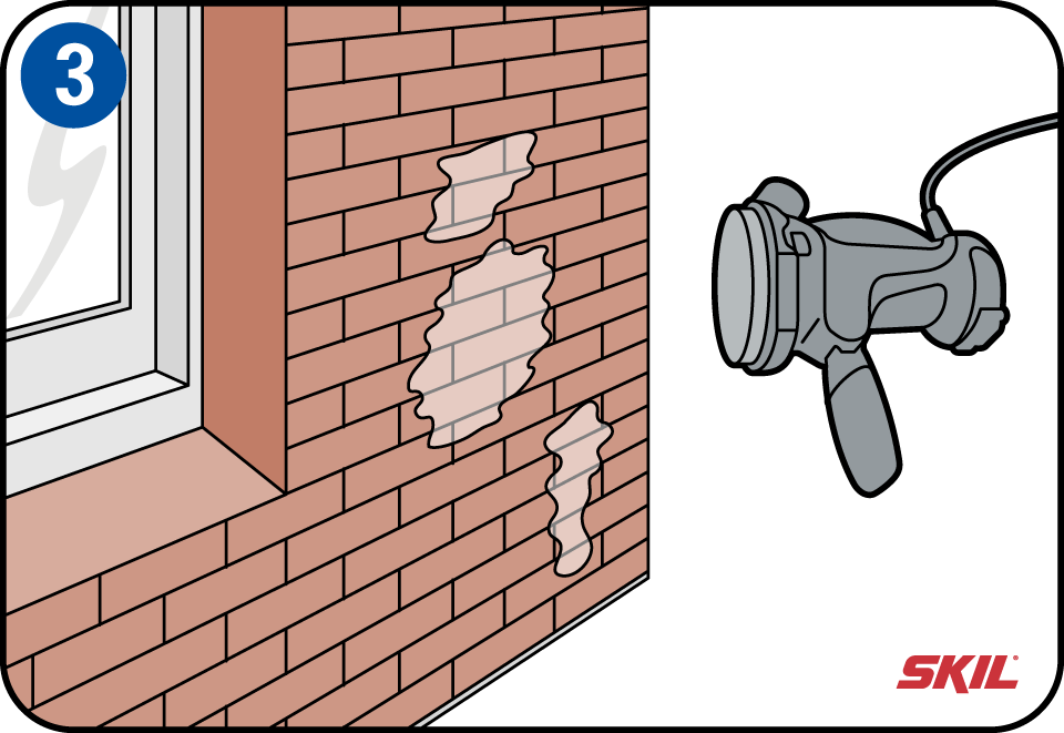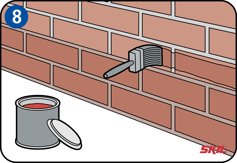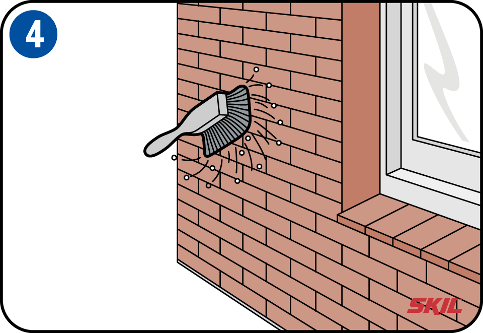 Op de grond moet je de onderzijde van de muur zandvrij maken met een borstel, hiermee voorkom je dat je kwast straks vol zit met zand. Indien mogelijk graaf je een steen dieper, verwijder het zand en laat goed drogen. Breng op onbehandelde bakstenen eerst een grondlaag aan en laat minimaal 12 uur drogen. Accentueer de gevelplint met een donkerder kleur. Modderspatten zijn dan bij regen minder zichtbaar.