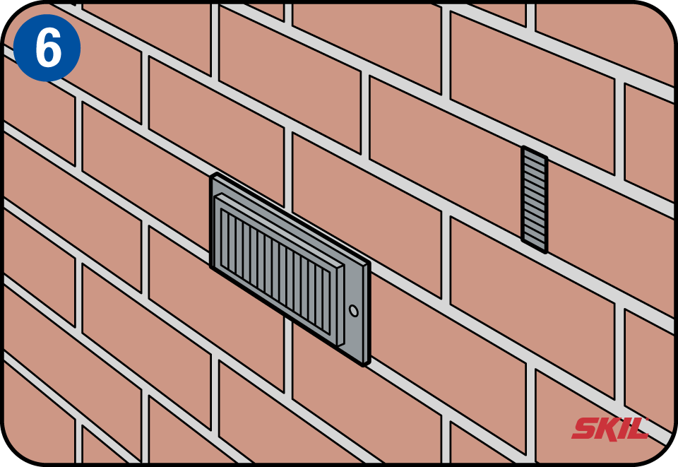 Heb je last van opstijgend vocht in de muur, dan moet je dat probleem eerst oplossen. Het kan zijn dat er geen goede isolatie is aangebracht tussen de fundering en de muur. Je kunt dan bijvoorbeeld de muur verluchtigen met ventilatieopeningen, tussen de staande voeg of horizontaal op de plaats van een steen.