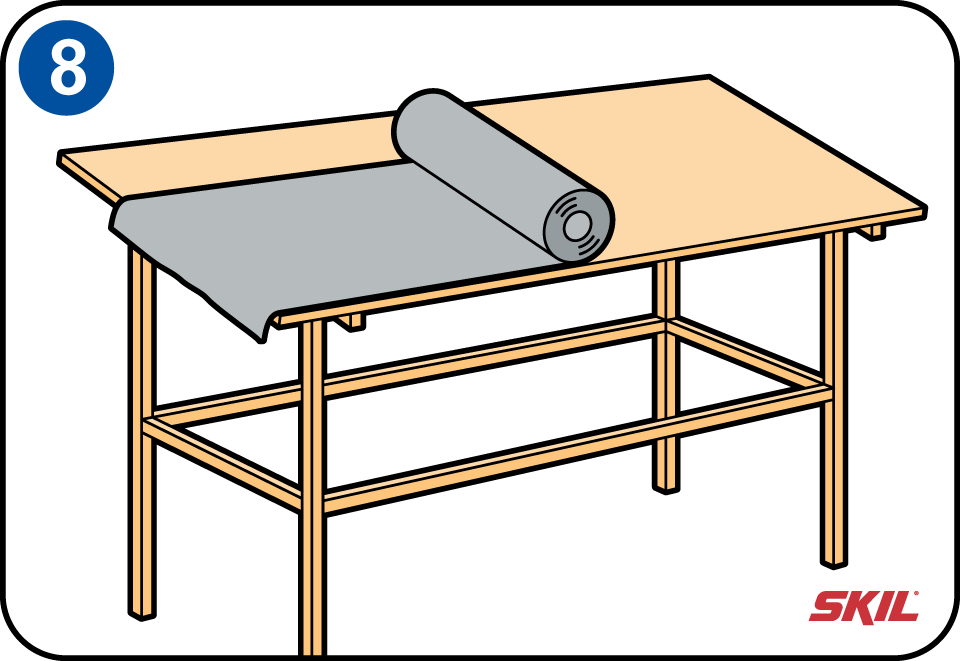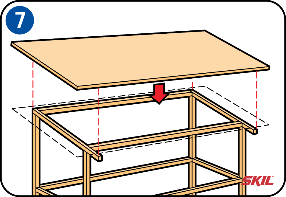 Voor de dakplaat kun je 18 mm watervast multiplex gebruiken. Let op dat het dak aan de twee zijkanten en de voorzijde zo'n 30 cm moet uitsteken. Plaats de dakplaat op het frame, waarbij de achterzijde uitgelijnd wordt met het frame van de achterzijde en aan weerszijden evenveel uitsteekt. Schroef de plaat aan het frame vast.