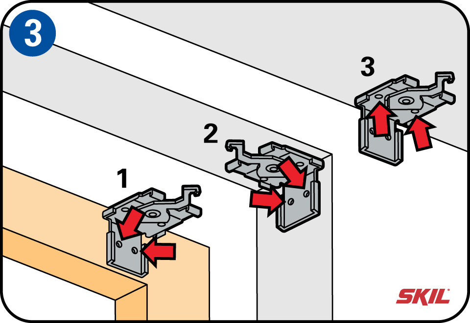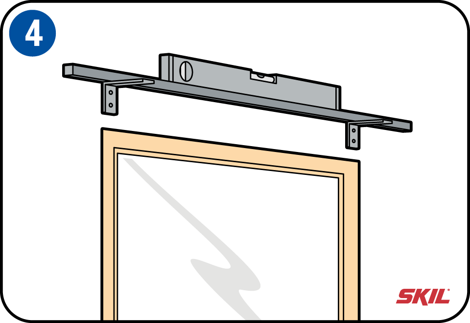 Bepaal de plaats van de eerste beugel en markeer de boorgaten. Boor voor het plaatsen op het kozijn de gaten even voor met een dunne houtboor (2,5 mm). Komt de jaloezie tegen de muur, gebruik dan een 6 mm steenboor of betonboor en plaats de pluggen. Schroef vervolgens de eerste beugel gedeeltelijk vast. Stel, met gebruik van een lange lat, de rail met een waterpas horizontaal. Hierna markeer je de plaats van de tweede beugel. Indien er nog een derde beugel nodig is, let dan op de plaats van die beugel t.o.v. het ladderkoordje.