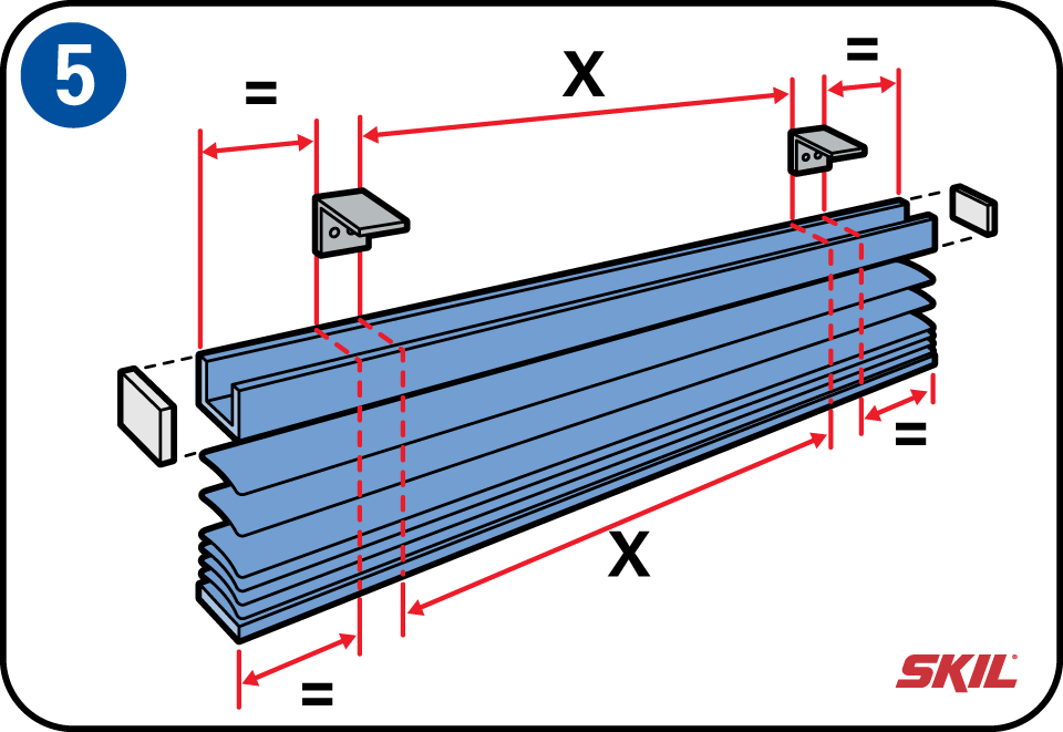 Nadat je de steunen hebt geplaatst kun je de binnenmaat tussen de zijsteunen opmeten. Teken deze maat af op de boven- en onderbalk van de jaloezie. Houd bij het opmeten rekening met de einddoppen van de balken.