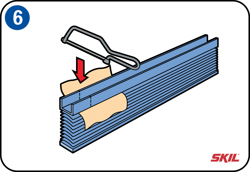 Maak de boven- en onderbalk op maat en bescherm daarbij de jaloezieën met een doek of een stuk karton. Plaats de einddoppen na het zagen weer terug op de balken.