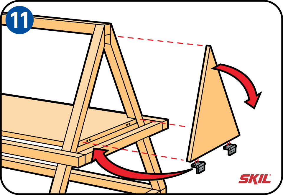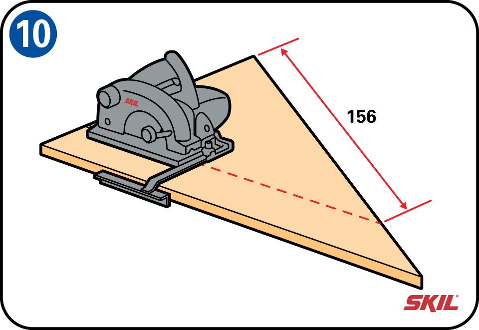 Gebruik een cirkelzaag of een scherpe handzaag. Zaag de achterwand in dezelfde driehoeksvorm als de A-steun en schroef deze vast.