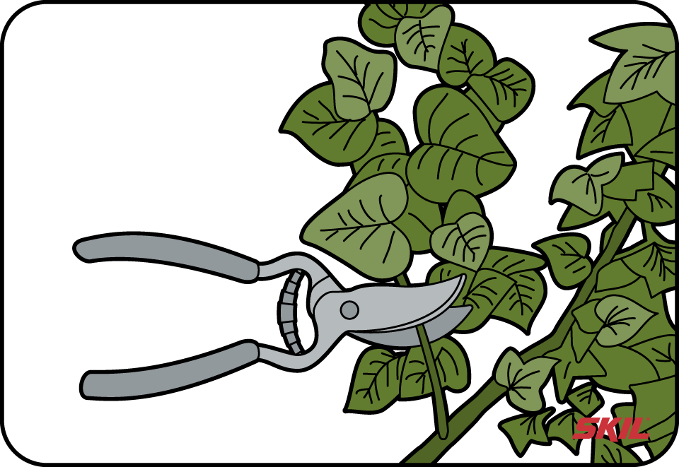 Wanneer je de klimplant gaat snoeien, is het verstandig het juiste gereedschap gereed te hebben. Voor dunne takken is een snoeischaar vaak voldoende; voor de dikkere, hardere takken kan een takkenschaar en zelfs een snoeizaag handig zijn. Heb je echt een grote snoeiklus van bijvoorbeeld je overwoekerde klimop? Dan kan een heggenschaar een handig hulpmiddel zijn.