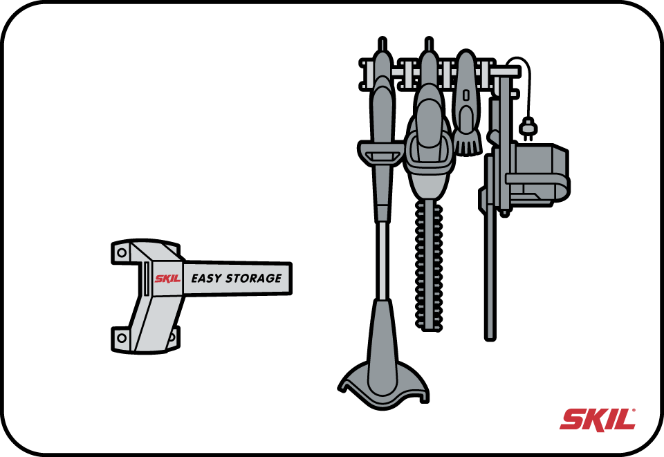Veel tuingereedschappen hebben speciale opbergsystemen voor aan de wand of in een kast. Zo beschikken de tuingereedschappen van SKIL over het ‘Easy Storage’ ontwerp, wat betekent dat ze gemakkelijk kunnen worden opgeruimd en na gebruik bijna geen ruimte in beslag nemen. Maak hier gebruik van en plaats je gereedschappen niet te dicht op elkaar.