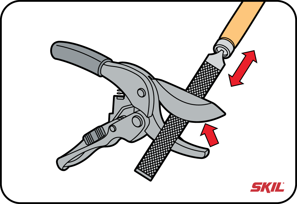 Gebruik voor elke klus het juiste accessoire. Voor je eigen veiligheid, gemak en moeiteloos gebruik van de gereedschappen dien je deze goed scherp te houden. Je snoeigereedschap wordt namelijk bot als je er opgespat zand of te dikke takken mee snoeit. Vervang zaagjes regelmatig en slijp snoeischaren en takkenscharen altijd met een slijpsteen of een bijlvijl aan het begin of het eind van het seizoen.