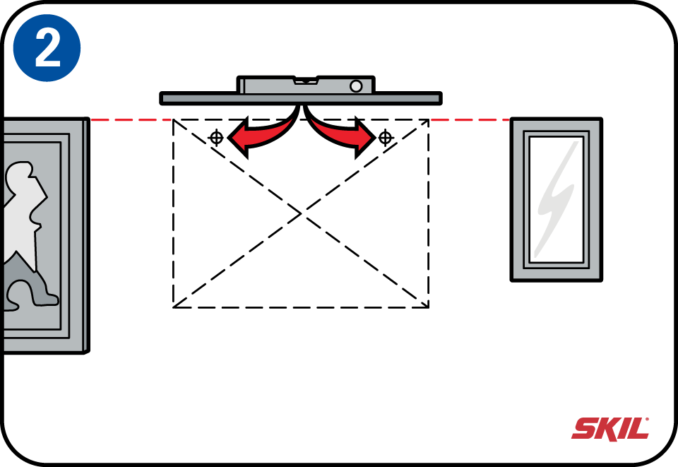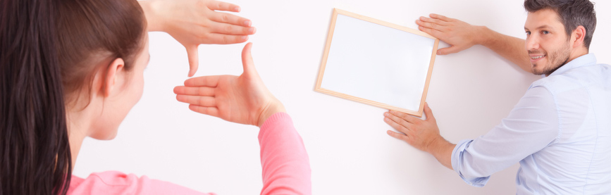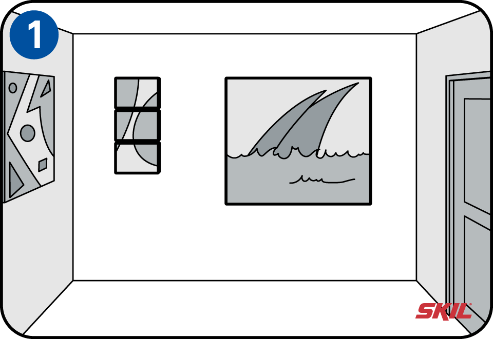 Probeer alles zoveel mogelijk in lijn op te hangen, dit geeft rust in de ruimte. Heb je de juiste locatie bepaald, houd dan het schilderij tegen de muur en bepaal de exacte plaats. Kleine schilderijtjes kun je met een enkele schroef ophangen, maar voor grotere schilderijen kun je beter twee schroeven gebruiken. Teken het eerste gat af en bepaal met de waterpas de locatie voor het tweede ophangpunt. Controleer nogmaals of de plaats voor het tweede gat goed waterpas is afgetekend.