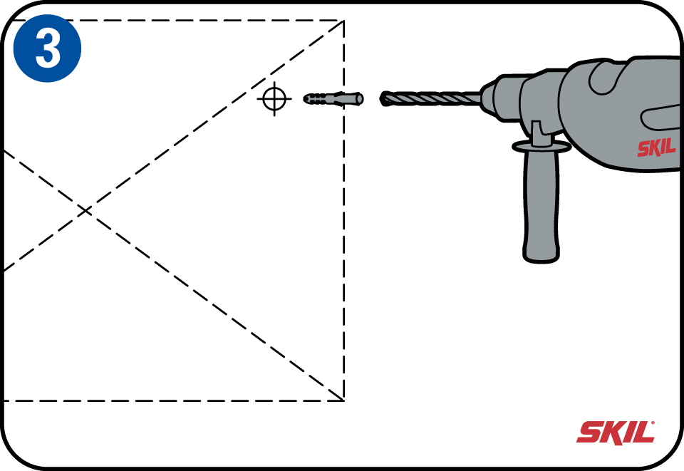Voor een stenen of betonnen muur kies je universele 6 mm pluggen. De boor-diameter moet natuurlijk gelijk zijn aan die van de plug-diameter. Om een gat in steen te boren neem je een steenboor.