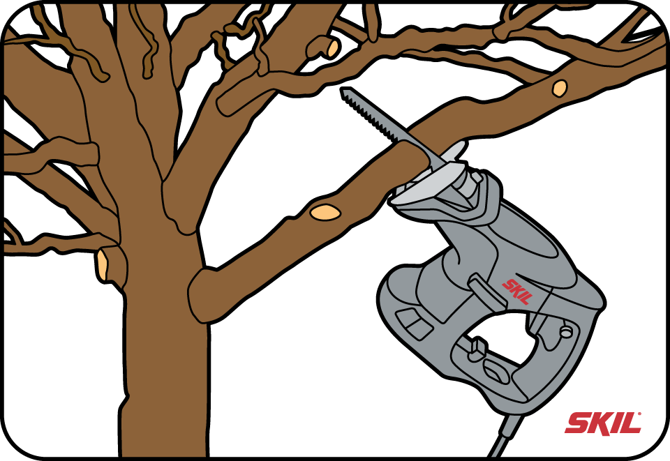Je kunt eventueel ook een reciprozaag gebruiken voor het zagen van dikkere takken.