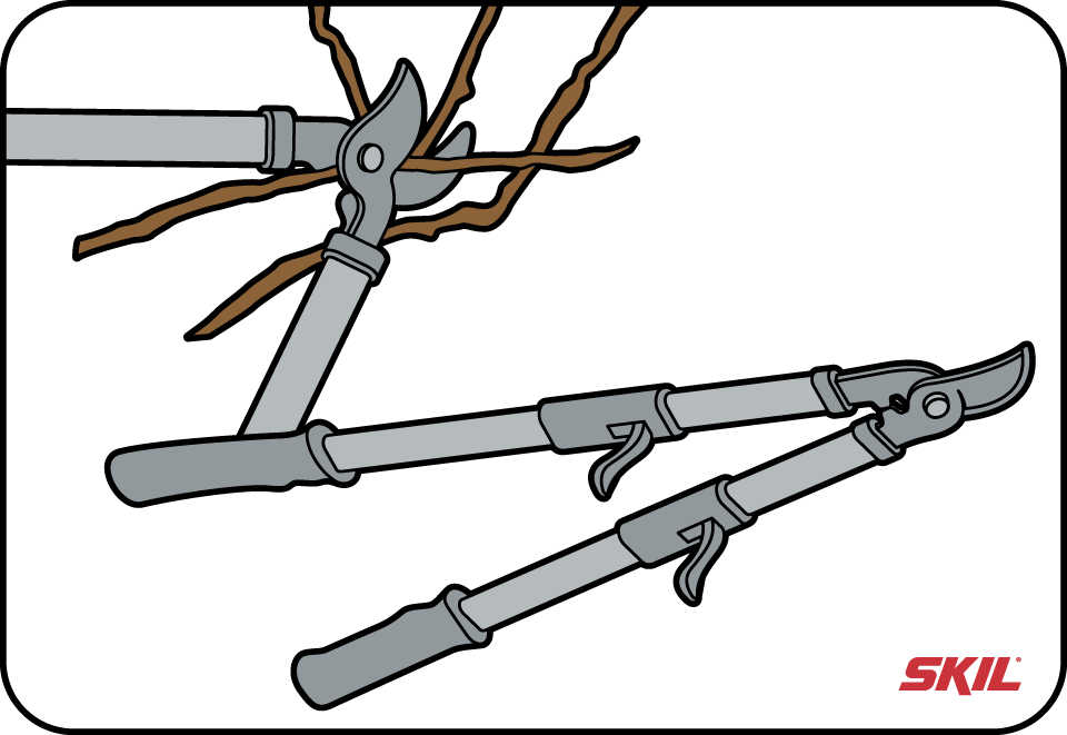 Een snoeischaar is onmisbaar voor elke tuinier en wordt gebruikt om dunne tot middel-dikke takken te knippen. Er zijn twee soorten snoeischaren: het papegaaienbekmodel en het aambeeldmodel.