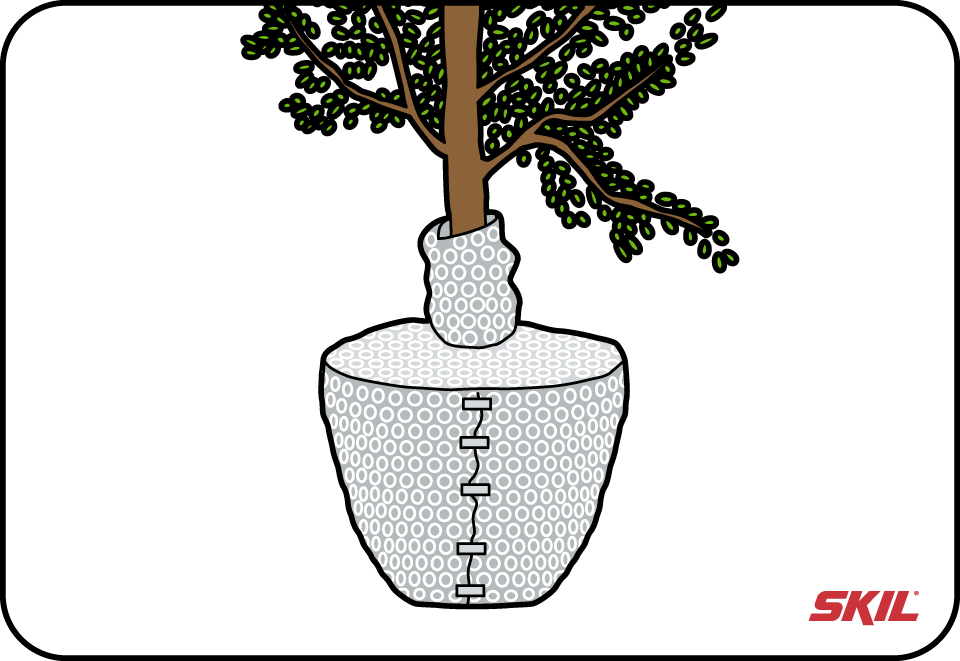 Planten in potten zijn in de winter nog kwetsbaarder bij vorst dan planten die in de grond staan; door de wand van de pot kunnen de wortels namelijk eerder bevriezen. Bescherm planten in potten door de potten aan de buitenkant in te pakken met noppenfolie. Vergeet niet om gaatjes in de bodem van het noppenfolie te maken, zodat regenwater nog weg kan lopen. Wanneer het langdurig en/of harder gaat vriezen, is het goed de bepotte planten in een schuur of garage te zetten.