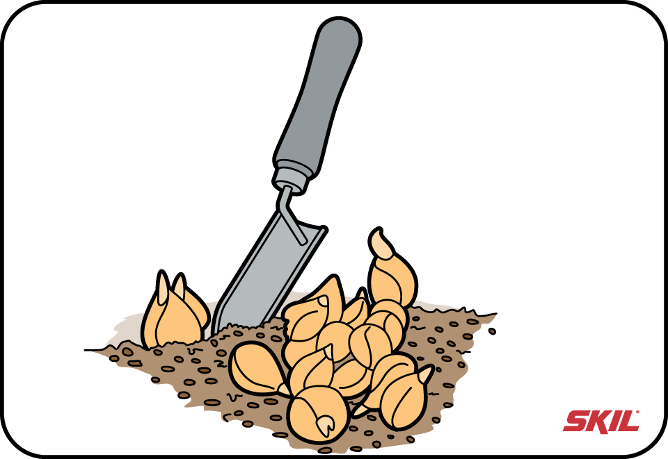 Maak de aarde eerst goed los met een schepje. Vorm vervolgens een gat in de grond ter grootte van de bloembol die je wilt planten en twee keer zo diep als de diameter van de bol. Plaats één of meerdere bollen in de grond en maak het gat dicht met aarde. Geef de bloembollen na het planten water, zodat ze goed kunnen groeien.