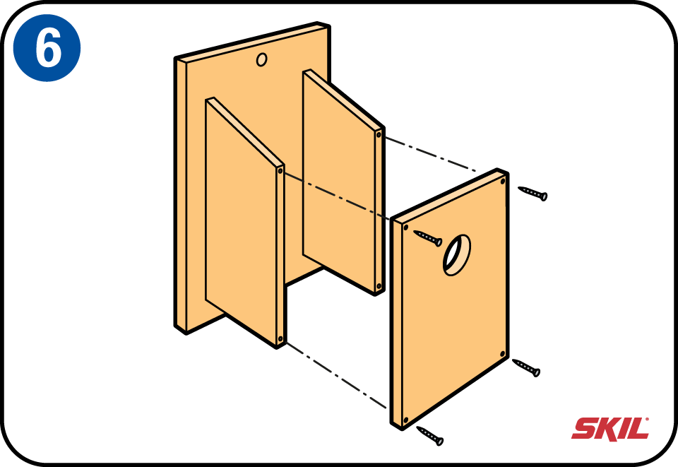 Monteer het voorpaneel van het vogelhuisje op de zijpanelen met waterbestendige houtlijm en spijkers of schroeven.