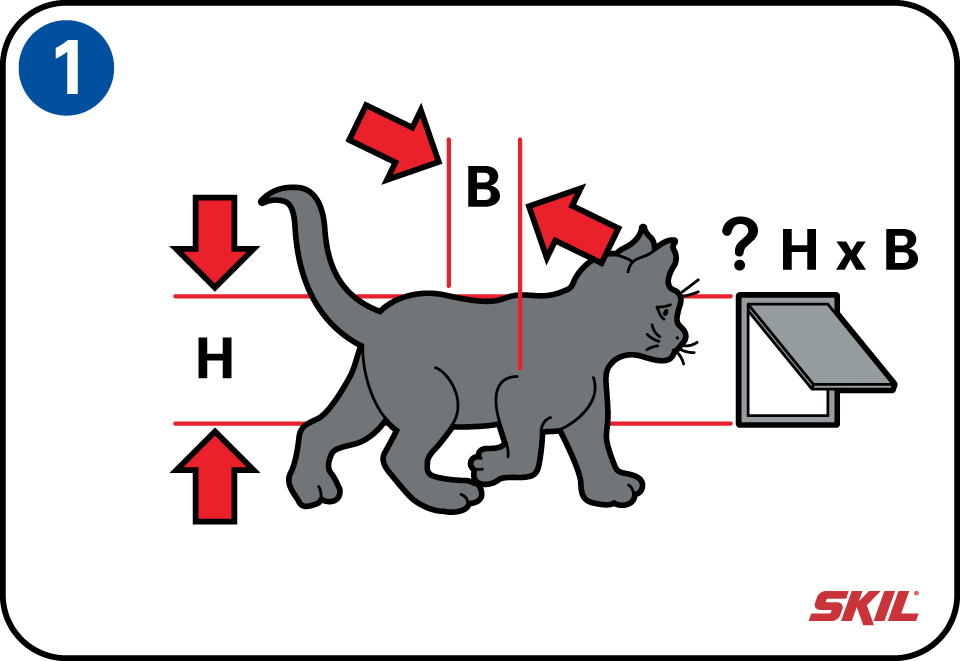 Niet elke kat is even groot. Om gemakkelijk naar buiten en binnen te kunnen gaan, stel je de hoogte van het kattenluikje af op de maat van je kat. De gemiddelde hoogte van het kattenluik is 15 cm van de vloer. Dit is ook de gemiddelde buikhoogte van een kat. Markeer de gekozen hoogte met potlood op twee plaatsen voor een rechte lijn.