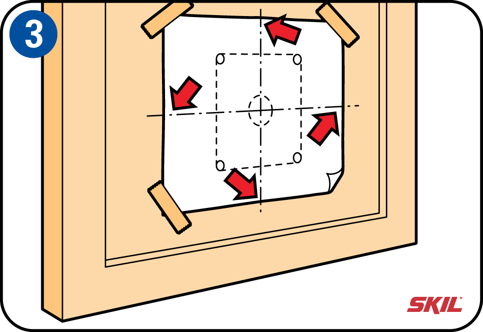 De meeste kattenluikjes worden geleverd met een papieren sjabloon, zodat je kunt zien waar je de vier gaten moet boren. Zorg ervoor dat het middelpunt op de sjabloon het middelpunt is op de deur. Gebruik plakband om het sjabloon op zijn plaats te houden.