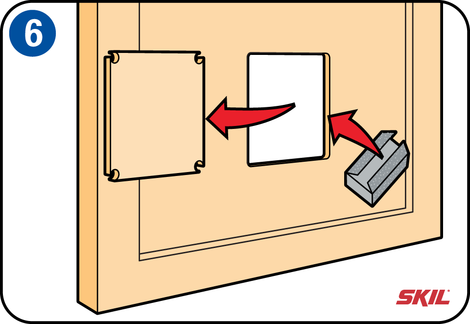 Werk de binnenrand glad af met schuurpapier. Verwijder zaagsel met een stofzuiger. Plaats de voorzijde van het kattenluikje over het gat en controleer of de klep gemakkelijk kan bewegen.
