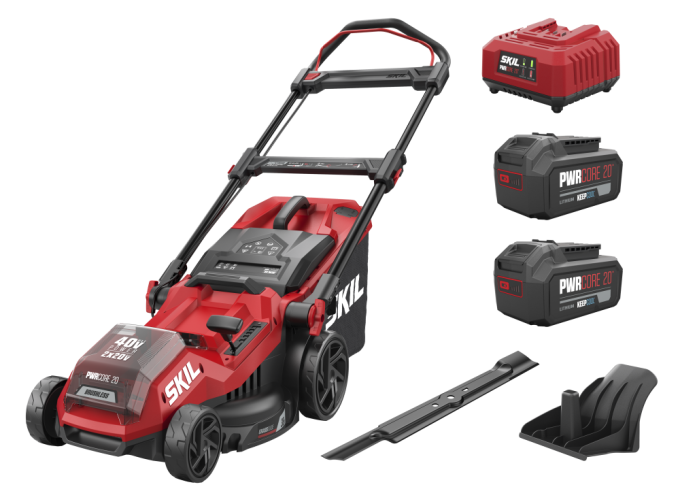 O cortador de relva sem fio SKIL 0135 com motor sem escovas oferece a potência de ‘40V Max’ ao utilizar duas baterias de iões de lítio ‘20V Max KEEPCOOL™’, permitindo cortar sem esforço relvados de tamanho médio. Faz parte da gama SKIL sem escovas, oferecendo uma relação qualidade-preço incomparável. O nosso motor sem escovas é mais rápido, mais forte e dura 10 vezes mais do que um motor convencional com escovas. Apresenta uma largura de corte de 38 cm para um corte de relva eficiente e uma pega central que permite ajustar convenientemente a altura entre 25 e 75 mm em seis posições. O cortador inclui três definições de altura de trabalho para promover uma boa postura e reduzir o esforço nos braços e nas costas. A alavanca de libertação rápida permite dobrar e desdobrar as pegas em segundos para facilitar o transporte e o armazenamento. Equipado com o ‘Grass Guide’ SKIL, ajuda a cortar a relva com precisão junto a paredes e bordos. O acessório de mulching fertiliza naturalmente o relvado ao bloquear o canal de recolha de relva. Um grande coletor de 45 l com indicador de ‘Caixa cheia’ permite cortar mais relva com menos interrupções. A pega ergonómica de grandes dimensões garante um transporte conveniente e o design ‘Easy Storage’ poupa espaço quando a ferramenta não está a ser utilizada. O SKIL 0135BA é fornecido com duas baterias ‘20V Max’ (18V) 4,0 Ah ‘Keep Cool’, um carregador rápido, um saco de recolha de relva de 45 l e uma lâmina de cortador de relva.