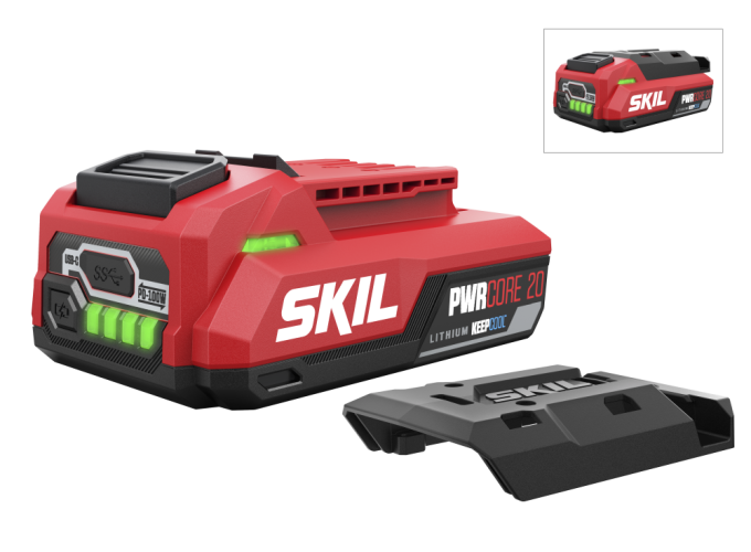 - Bateria de iões de lítio PWRASSIST™ «20V Max» de 2,0 Ah com tecnologia KEEPCOOL™