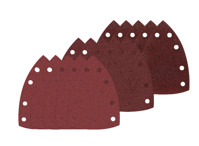 Denna sats består av 15 kardborrepapper som har hög, medelhög och fin grovlek och passar för materialborttagning och slät finish på stora ytor och hörn.