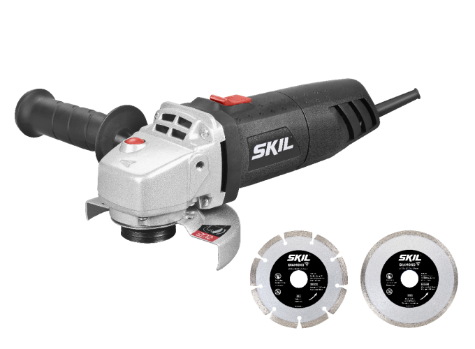 Kotni brusilnik SKIL 1043 odlikuje ergonomska oblika, vendar vas kompakten videz orodja naj ne zavede. Moč njegovega zmogljivega 950-vatnega motorja več kot zadostuje za večino najpogostejših opravil, ki zahtevajo rezanje in brušenje. Sistem blokade vretena omogoča preprosto in udobno menjavo pribora. Orodje SKIL 1043 lahko zaradi stranskega ročaja, ki ga je mogoče namestiti v dveh položajih, preprosto uporabljajo tako levičarji kot desničarji. Samodejni sistem „Clic“ omogoča preprosto nastavitev ščitnika brez orodja, s katerim lahko iskre preusmerite v poljubno smer. Elektronska funkcija preprečevanja ponovnega zagona poskrbi, da se orodje po prekinitvi dotoka električne energije ne vključi samodejno. Kotni brusilnik ima tri metre dolg električni kabel za optimalno svobodo pri delu. Kotnemu brusilniku SKIL 1043 sta priloženi visokokakovostni diamantni plošči, idealni za raznovrstno rezanje.