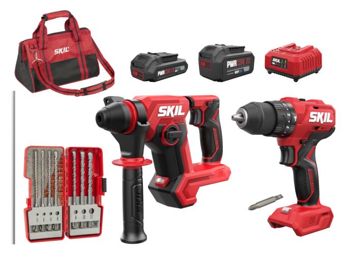 Комбінований набір 3362 EA складається з безщіткового акумуляторного ударного дриля SKIL 3021 і безщіткового акумуляторного перфоратора SKIL 3821. Ці інструменти є частиною асортименту безщіткових інструментів SKIL, що пропонує неперевершене співвідношення ціни та якості. У середньому вони забезпечують на 45 % більшу потужність і дозволяють виконувати завдання на 55 % швидше, ніж інструменти зі звичайним щітковим двигуном. Не менш важливо, що термін служби безщіткових двигунів SKIL у 10 разів довший, ніж у звичайних двигунів, що робить їх економічно вигідним та екологічним вибором. Як і всі інші інструменти з акумуляторним живленням SKIL «20V Max», ці інструменти живляться від акумуляторів і зарядних пристроїв, виготовлених за провідною в цій галузі передовою технологією «PWRCORE 20™». Безщітковий акумуляторний ударний дриль SKIL 3021 ідеально підходить для свердління деревини, металу і навіть цегляної кладки, а також для найскладніших робіт із загвинчування. Інструмент має дві передачі, які можна використовувати як для швидкого свердління, так і для свердління й загвинчування в твердих матеріалах. Безщітковий акумуляторний перфоратор SKIL 3821 — компактний, але високопродуктивний інструмент з двома функціями, який можна використовувати для загвинчування, звичайного свердління та свердління в бетоні. Постійна швидкість забезпечує ефективність роботи при збільшенні навантаження. Система зменшення вібрації («VRS») в інструменті забезпечує оптимальний комфорт під час роботи завдяки зменшенню вібрацій. Комбінований набір SKIL 3362 EA містить обидва інструменти в сумці для зберігання з одним акумулятором KEEPCOOL™ ємністю 2,0 А·год, одним акумулятором KEEPCOOL™ ємністю 4,0 А·год, швидкозарядним пристроєм, двосторонньою викруткою, набором свердел SDS+ (7 шт.), бічною ручкою та регулятором глибини.